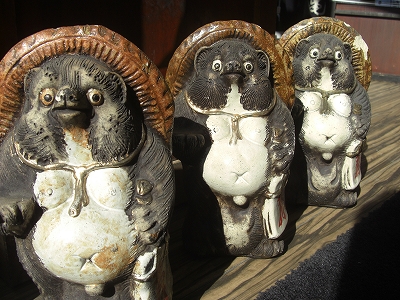 店頭ではたぬきさんも「いらっしゃいませ~」とお待ちしています。