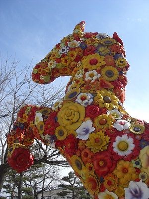 入口には馬の街、十和田らしく、綺麗なお花で飾られたお馬です。