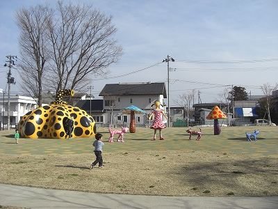 帰りは美術館のお向かいにあるオブジェでもうひと遊び