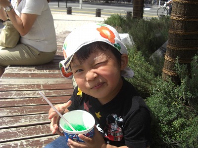 だんだんと暑くなり、息子はかき氷を食べました。
