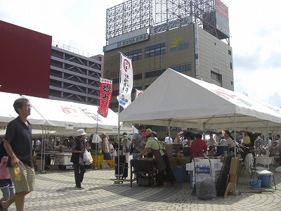 帰りの駅前広場では産直市やフリーマーケットでここも賑やかでした。