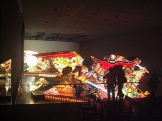 金魚ねぶたのトンネルを抜けると灯のついたねぶたがドドンと何台もありました。